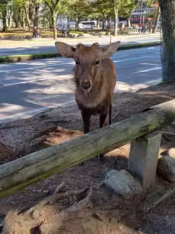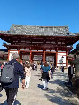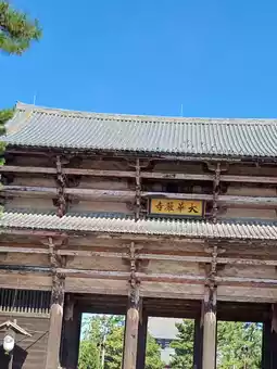 A 10-minute walk from the park will take you to Todaiji Temple (東大寺), an ancient temple and a UNESCO World Heritage Site 🌏. Inside, you’ll find the Great Buddha (Daibutsu), standing 15 meters tall, housed in a massive wooden hall 🪷. Kids will be amazed by the grandeur of the temple, and there’s also a "wooden pillar with a hole" that, according to Japanese belief, brings good luck and health if you can pass through it 💪✨.