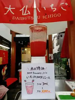 In addition to strawberry daifuku and soft serve, they also offer seasonal items and smoothies, making it a perfect choice for enjoying Nara's street food scene!