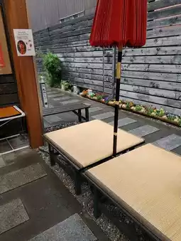 While there is no indoor seating, there are tatami-style benches in front of the shop where you can sit and enjoy your treats.