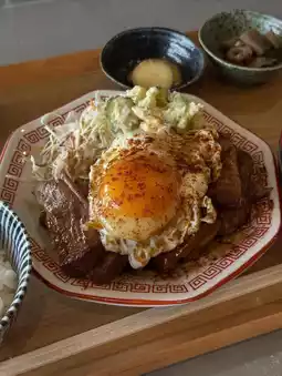 Of course, I ordered the char siu egg set meal. The chewy char siu and sweet and spicy sauce were mouthwatering! The rice is delicious with a cracked, soft-boiled fried egg drizzled in it. 🍚