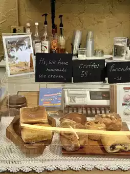 The shop serves bakery items🥯, pancakes🥞, and other desserts, as well as a wide selection of Italian dishes🍝.
