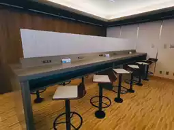 The lounge has several seating areas and a variety of food and beverages, including hot and cold food, snacks, and can be selected at the counter bar. Try ordering a snack and a small set of beef rice bowls. It's perfect for a place to sit and wait for your flight.