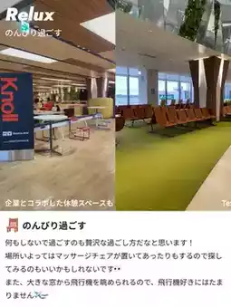 There are also several relaxation spaces in the airport that are affiliated with companies! Compared to ordinary sofas, they are fluffy and relaxing, so it's nice to spend the time sleeping💤