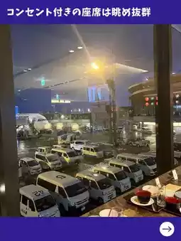 The atmosphere in the lounge was luxurious, and each seat was equipped with both a USB port and an outlet, which was a nice touch. The one-person counter seats by the window were completely made of glass, and the view was great.