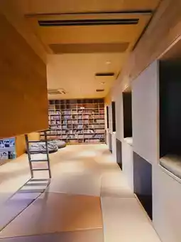 A super large leisure space where you can zone out, read, or just lie down all day! They also provide cold and warm water, showing great attention to detail!