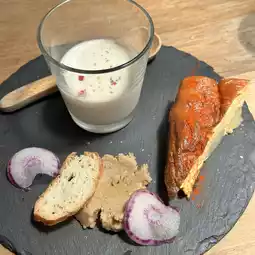 The appetizers were elaborate, and the spicy pâté was delicious.