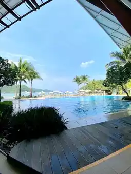 We walked by the beach, dipped in the pool, and enjoyed simple meals with a view. The calm lagoon, mountain backdrop, and soft sand made everything feel peaceful.