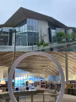 In the silent running space, you can relax and read while surrounded by potted plants.