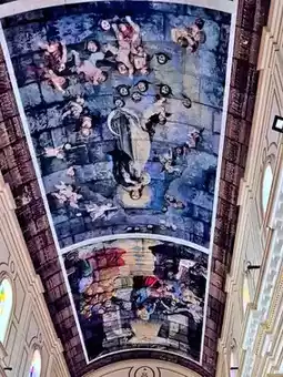 3⃣️When you walk into the church, you can see exquisite sculptures. The murals on the dome are spectacular, depicting religious scenes such as the Annunciation and the Assumption of the Virgin Mary.
