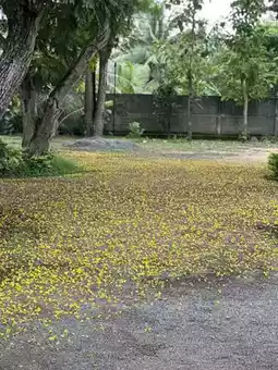 These fallen flowers lie like flecks of gold scattered by the wind, soft and vivid against the dull dust of summer. They do not wither in obscurity, but instead lend beauty to the ground they touch—reminders that even in their descent, there is grace, there is colour, and there is life.