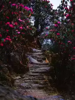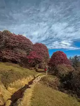 1️⃣ Dhap to Pikey Base Camp: Traverse through pristine rhododendron forests, with giant flower trees forming natural 'tunnels,' perfect for portrait photography.