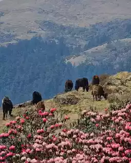 Ecological Diversity: The trek offers a rich variety of vegetation, from low-altitude rhododendron forests to high-altitude meadows. In April and May, the flower fields and snow-capped mountains create a stunning backdrop.