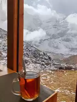 Surrounded by icy ridges and glacial moraines, Khare offers jaw-dropping views of Everest, Lhotse, Makalu, and Cho Oyu — five of the world’s tallest mountains 🌍🌄. The air is thin, the silence profound, and the energy electric. Whether you’re acclimatizing or reflecting, Khare’s alpine charm and Sherpa hospitality make it unforgettable 🏘️🫖.