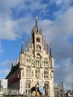The Gouda Town Hall (Stadhuis) is the most iconic building in Gouda, Netherlands, and one of the oldest Gothic town halls in the country. Built in the 15th century, it stands proudly in the middle of the Markt Square, surrounded by the famous cheese market and charming cafés. With its elegant spires, red shutters, and white stone walls, the building looks like something from a fairytale. Each side tells a story of Gouda’s rich past, from trade and craftsmanship to city pride. Every hour, visitors can watch the clock tower’s moving figures, which perform a little musical show — a favorite moment for both locals and tourists. During the holidays, the Town Hall becomes the glowing centerpiece of “Gouda by Candlelight,” when thousands of candles light up the square. Whether day or night, the Stadhuis represents the true heart of Gouda — a timeless symbol of history, beauty, and Dutch tradition.
