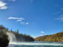 We spent the morning exploring the viewing platforms and walkways that bring you right up close to the water — you can actually feel the spray on your face. Boats cross the river for even closer views, and Schloss Laufen offers stunning vantage points from above.