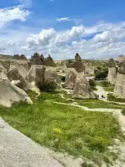 Visiting Paşabağ offers a surreal experience — walking among some of the most impressive fairy chimneys, including formations with multiple caps and ancient cave dwellings carved into the stone. The valley’s quiet trails invite exploration and photo opportunities around every corner.