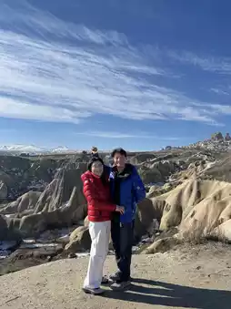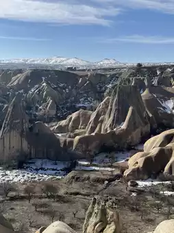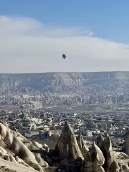 The Göreme Panorama is literally a place where the entire terrain unfolds like a living map. Sunlight streaming through the rock pillars, hot air balloons drifting across the sky, and the silence brushed by the wind—all of it feels like a scene from a movie. Just by pausing for a moment, the time and nature of this land quietly seep into your heart.