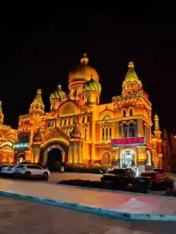 Taste local snacks such as grilled skewers, milk tea, and Russian desserts, enjoying the lively atmosphere of the border at night.