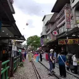 Another feature of Shifen Old Street is that the old street and the railway coexist. It is a beautiful sight to take pictures standing on the railway. The train passes by about every half an hour to an hour, so be careful.