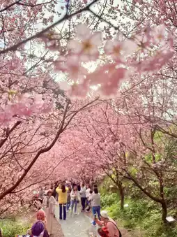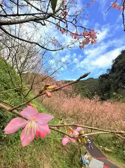 Winter cherry, perfume cherry, Formosa cherry, Fuji Yoshino, Somei Yoshino are planted along the mountain, and the last is the grafted area. The flowering period spans from January to March.