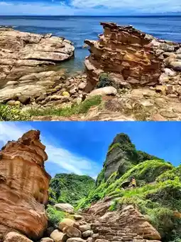 The North Coast is one of the most beautiful coastlines in Taiwan! The diverse geological features, combined with the blue sky and ocean scenery, extend from Gongliao to Sanzhi, Shimen, Tamsui, Bali, and other areas, with fun and photogenic attractions along the way.