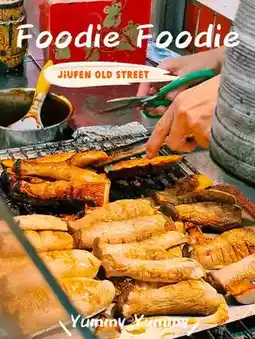 Juifen Old Street, Taiwan is a pedestrian street that everyone wants to go to if they visit Taiwan. It is famous for filming. But what you can't miss is the peanut ice cream. On the day I went, I couldn't find it. I missed it. But anyway, the BBQ mushrooms are sooo delicious. It is a pedestrian street that we walked up the hill all the way. There are people selling souvenirs, food, clothes, and various photo spots. If you come to Taiwan, you shouldn't miss this place. #jiufenoldstreet