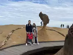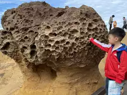 When we travel to Taipei, we usually go to different night markets for snacks and milk tea! Today, our family decided to appreciate Taiwan from another angle and explore the Yehliu Geopark. This geopark is mainly composed of sedimentary sandstone, then through the sea breeze, sea water, nature's miraculous carvings, resulting in a series of extremely stylish natural stone sculptures including ice cream stone, love heart stone, queen head stone and so on. The park is located in New Taipei City, north of Taipei. It takes about 50 minutes by car from the Taipei City Center Hotel, which is very convenient. When we came to the park gate, we first took a floor plan and brief introduction of Yehliu Geopark to make it easier to find the different stone sculptures in the park. There is also a large map erected next to the entrance, so you can slowly check the attractions you want to enjoy. After a short walk along the seaside, we can see many different stone sculptures. The food-loving brother loves the mushroom stone, which looks a bit like a tea tree mushroom from a distance. The sister is the most loving stone. She also found some small fossils in the ground next to the stone sculpture! Families and friends who are preparing to travel to Taipei, you may wish to come to Yehliu Geopark with your children to enjoy this magnificent natural creation!