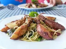 A leisurely walk on the trail should be paired with delicious food. After finally booking a private island (Mykonos Cafe) scenic restaurant, I ordered the seasonal limited squid pasta set, which is hearty and you can enjoy the sea view while eating!