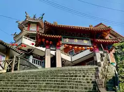 At the top of the mountain, the stacked boulders look like a teapot without a handle when viewed from the nearby Banping Mountain, hence the name "Teapot Mountain without handles." At the end of the uphill stairs, you will first see the first pavilion, "Chaobao Pavilion." Here you can take a break and enjoy the spectacular views of Keelung Mountain and the Yin-Yang Sea.