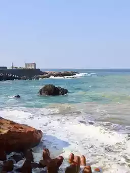 Walking along the winding path, a gentle breeze brushes against my cheeks, and the sound of waves crashing against the rocks resonates melodiously. This mysterious sea area was once a thriving mining site, witnessing countless historical changes. Now, only the serene landscape and the whispers of the sea remain. On the rocks by the shore, white minerals often appear, adding a touch of mystery. In a corner of the Yin-Yang Sea, I stand quietly, feeling the power of nature and its silent call. This sea is not only a miracle of nature but also a spiritual cleansing, allowing one to forget worries and return to the purest tranquility.