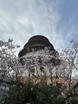 Tianyuan Palace has a long history. This magnificent temple stands under the cherry trees, adding a lot of cultural heritage to the entire attraction. Standing in front of the palace and looking up at the unique architecture, one can't help but feel the perfect fusion of traditional culture and natural beauty. Every corner here exudes aura, making people want to capture this precious moment with their camera📸.