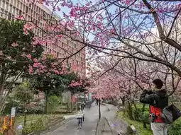 In the Xike Park in Xizhi, New Taipei City, right next to the Xintai 5th Road gas station, there is an inconspicuous "Kanggaokeng Creek". Normally, when passing by, I just thought it was a big ditch. Unexpectedly, from mid-to-late January, the cherry blossom forests on both sides burst into full bloom, dyeing the colors into a riot of colors, which is super beautiful! It is really possible to enjoy the cherry blossoms while passing by on the way to work.