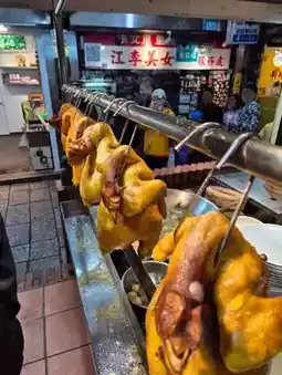 The red lanterns dripping with raindrops created a subtle atmosphere even during the day, and the warm aroma of food wafting from the stalls was even more alluring!