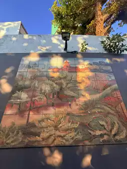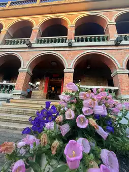 Today, the chapel has become a striking red Gothic-style building. The front of the church features the Holy Trinity, and the bell tower depicts the Christian doctrine of the Five Loaves and Two Fish. To commemorate Reverend Mackay's contributions to Taiwan, there is a small slope behind the chapel showcasing artworks by various artists depicting Mackay's medical practice and the chapel. Notably, the first piece is by the famous Taiwanese painter Chen Cheng-po.