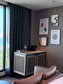 🏨 The design is super cool: The overall style of the hotel is modern and simple, the lobby is bright and tall, with soft lighting and green plants, creating a great atmosphere. The guest rooms have oversized floor-to-ceiling windows, and some rooms offer stunning views of the Tamsui River.