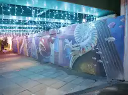 What attracted me most was the 3D painting with the theme of "Underwater World". When you walk beside the painted wall, it feels like you are in an underwater tunnel. All kinds of cute marine creatures come to life, making people stop and take photos to capture the beauty of this moment.