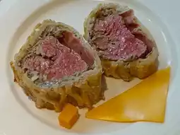 The main dish, Wellington Beef, is served from 12:00 onwards, with a golden and crispy crust that is very tempting