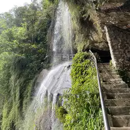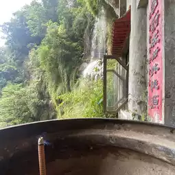 The initial section of the trail leading to Yinhe Cave is relatively damp, especially after rain when the ground can be slippery. It is recommended to wear non-slip shoes and watch your step. Along the way, you will pass a small temple next to a waterfall. Continuing upwards, you will reach the final destination, the Yinhe Cave Lüzu Temple. The temple is built against the mountain and is adjacent to the waterfall, which is abundant in water and offers a magnificent view. This is one of the highlights of the entire trail. There are public restrooms next to the temple, providing convenience for travelers to take a break.