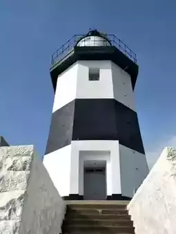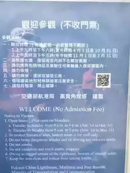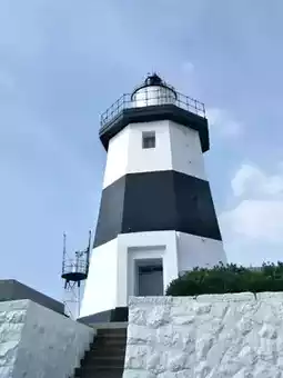 Fuguijiao Lighthouse, located in Shimen District, New Taipei City, is an octagonal concrete structure with black and white stripes. It is the northernmost lighthouse on Taiwan's main island. The lighthouse was completed in 1897 and was rebuilt in 1962 into its current octagonal shape. Initially, the lighthouse was not open to the public, but it has been accessible since 2015, although the lantern room remains closed to visitors. From the observation deck, you can enjoy the beautiful scenery of the Taiwan Strait. During the day, you can see the blue sea and sky, and at dusk, you can witness the spectacular sight of the sun setting behind the lighthouse, creating the illusion of a giant flaming lamp.