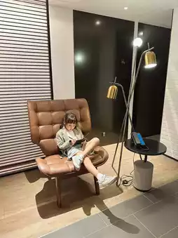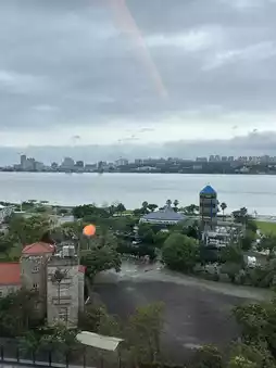 There is also a large window view, looking at the sparkling water of Tamsui River.
