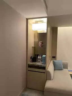 Now, let's go up to the room. There are restaurants on the 2nd and 3rd floors, and a swimming pool and gym on the 32nd floor. There are about 6 elevators, but be careful because one of them only goes to the lower floors. The elevator is structured so that you have to swipe your card key and press the button for the floor you want, so it is relatively safer than a hotel where anyone can enter. There are capsules and a machine where you can drink Illy coffee along with 2 bottles of water. As a side note, all the drinks in the refrigerator are free. (Of course, it is not free because it is included in the room price.. but the space feels relatively large. The room was on the 24th floor, so it was very, very suitable for enjoying the view of Taipei. The bathroom was also very luxurious. In addition to the separate shower, the toilet was separated, and there was even a bathtub.. The bathroom was incredibly nice.