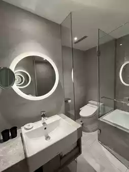 Ceasar Park Hotel Banqiao offers spacious, beautiful, and clean rooms with soft, comfortable beds. Each room is equipped with a coffee maker and a mini-fridge stocked with beverages. The bathroom is separate from the shower area, featuring an automatic heated toilet seat for added comfort. The shower area is spacious and well-designed, with His & Her sinks to avoid sharing. Guests can also enjoy a relaxing soak in the bathtub for ultimate relaxation. 🏖️