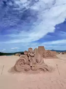 Upon arriving at the venue, I was greeted by stunning sand sculptures, featuring movie characters, mythological stories, and contemporary themes. Each piece is rich in detail and creativity, making it impossible not to take photos and share them online.