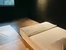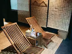 Bathrobes, towels, and basic toiletries are provided, along with complimentary tea and light snacks.