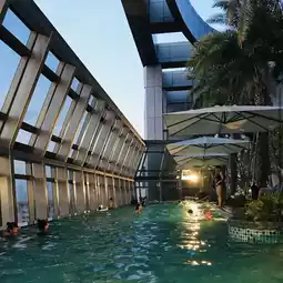 Hilton Taipei Sinban, located in Banqiao District, New Taipei City, boasts a prime location near major transportation hubs, making it highly convenient for accessing Taipei City. The hotel features a stylish and modern design that is both grand and refined. The spacious and bright guest rooms offer excellent views of Banqiao's city skyline, especially in the scenic rooms. The beds are comfortable, and the amenities are of top-notch quality, ensuring a superior sleep experience. One of the hotel's standout features is its outdoor infinity pool situated on a high floor. The pool exudes a vacation vibe, surrounded by palm trees and bathed in sunlight, creating a relaxing tropical atmosphere. Whether swimming or simply lounging on a sunbed, guests can enjoy stunning panoramic city views, particularly the breathtaking sunset scenery. The fitness center is well-equipped to meet guests' exercise needs. Dining options are diverse, with a sumptuous breakfast offering a wide variety of flavors. The staff provides professional and attentive service, ensuring efficient assistance with check-in, check-out, and daily inquiries. Overall, Hilton Taipei Sinban is an ideal choice for both business trips and leisure vacations.