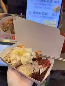 Starting with the bold flavors: Stinky Tofu. While wandering through the markets, you might catch a whiff of its strong aroma. But trust me, once you try it, it’s surprisingly tasty! Crispy on the outside, soft on the inside, and perfectly paired with pickled vegetables and sauce. If you’re feeling adventurous, this is a must-try at least once.
