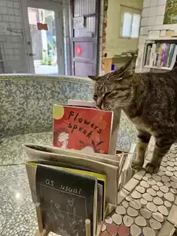 Recently, I visited Taipei, and the most delightful surprise was joining the eco-friendly tunnel tour at Sandiaoling. This wasn’t my first time visiting Sandiaoling; my previous trip was during spring when I went hiking and visited the waterfalls. During that trip, I stumbled upon a shop run by a Hong Kong couple called "Hong Kong Library." The owners, who have lived in Taipei for many years, welcomed us warmly. Their shop is housed in a former Japanese-style bathhouse built by coal miners, and the original design is still preserved. Visitors are welcome to explore and shop. The shop sells books related to Hong Kong, and the couple also creates pottery and cat-themed artwork for sale, giving the place a strong artistic vibe. Of course, cats are there to greet you as well. Sandiaoling is known for its abundance of cats, and you’ll find them in the streets and local shops, making it a paradise for cat lovers.