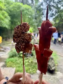After the walk, we tried some local snacks like sausages and grilled treats nearby, and perhaps because we had just seen the waterfall, everything tasted even better.