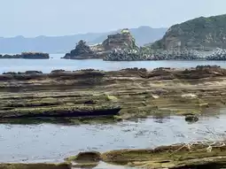 The golden rocks meeting the blue sea create an exotic scenery, and the bizarrely shaped rocks formed by volcanic activity, erosion, and weathering remind us of the intricate and magnificent power of nature.