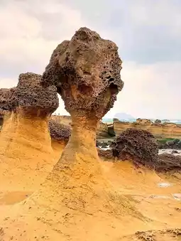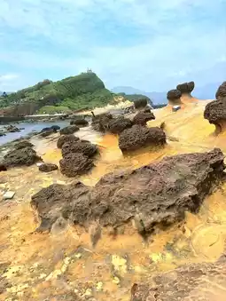 Yehliu Geological Park, located along Taiwan’s north coast, is famous for its unusual rock formations shaped by wind and sea. The most iconic is the "Queen’s Head," a slender neck-shaped rock that draws photographers from all over. As you walk along the coastal path, you’ll see mushroom rocks, honeycomb textures, and wave-carved stones that look like sculptures. The ocean breeze and dramatic landscape make it feel like walking through an open-air museum created by nature. Yehliu is a fascinating stop for both nature lovers and curious explorers visiting Taiwan’s northern coastline.